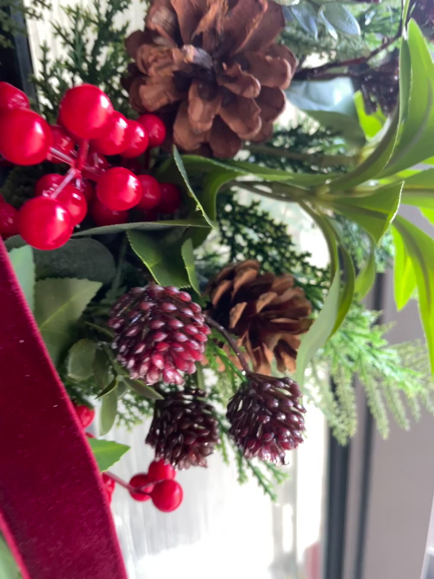 Beautiful Handmade Christmas Wreath – Festive Berries, Pinecones & Velvet Ribbon