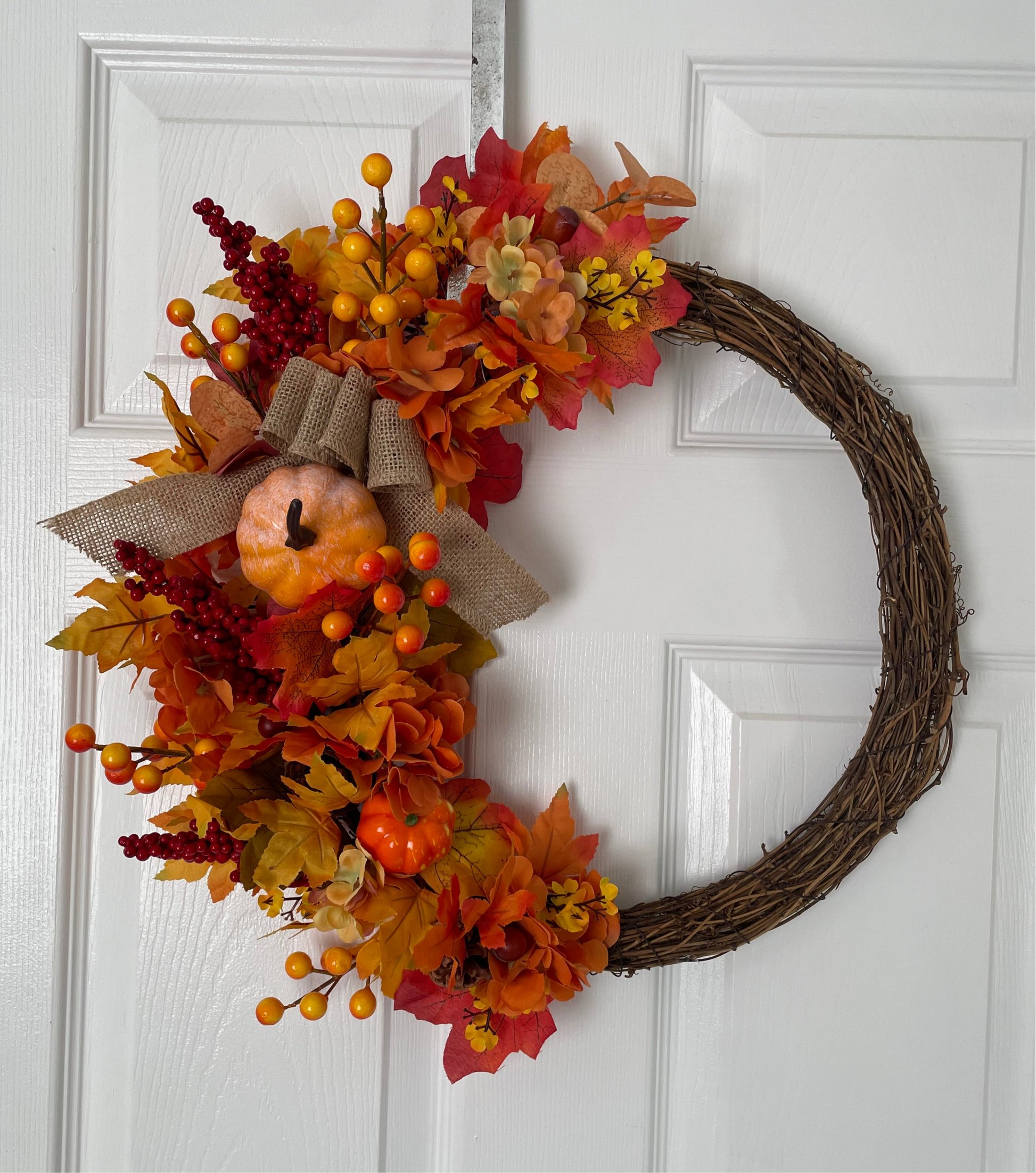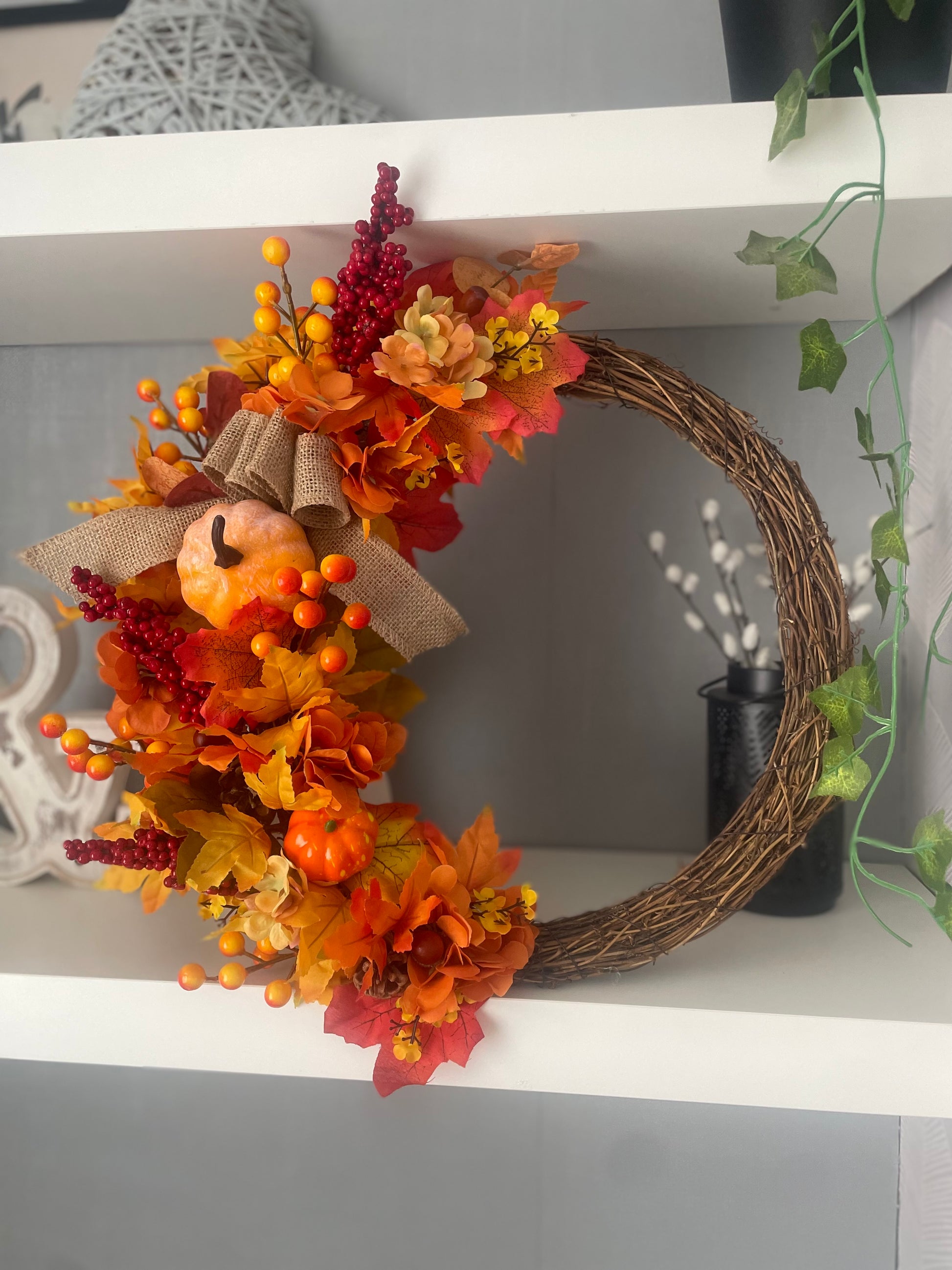 Handmade autumn wreath on a 30cm base with stunning autumn artificial flowers